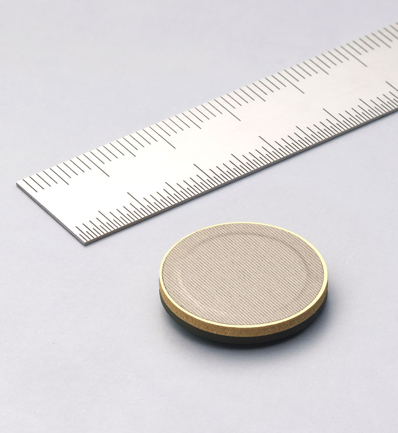 10円玉よりひと回り小さく約2mmの薄さで、高感度、高S/N比を達成しています。